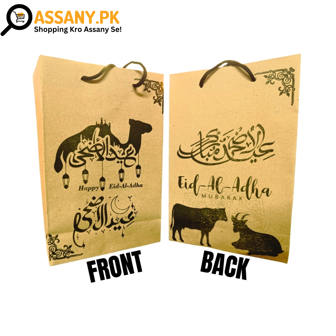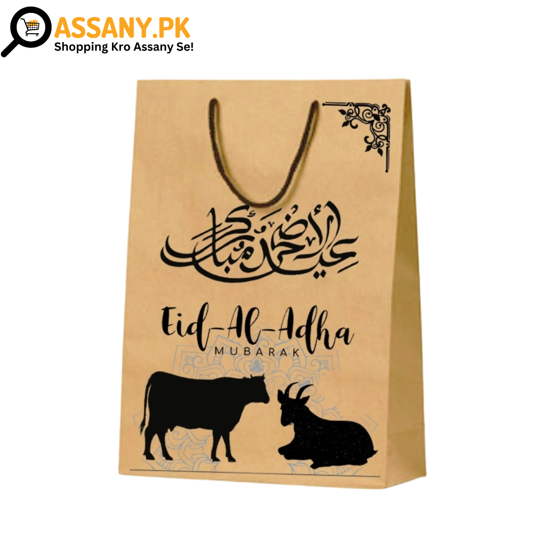 Premium Eid Mubarak Brown Paper Bakra Eid Bags with Polythene Inside (7x9 Inches – 1 Kg Capacity) - Assany.pk
